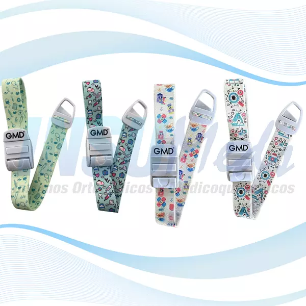 Este torniquete arterial está fabricado principalmente en poliéster, lo que disminuye la probabilidad de producir alergias en el paciente. Su broche de seguridad garantiza una liberación rápida. Es indispensable al momento de realizar canalizaciones o toma de muestras, Además cuenta con diseños médicos.